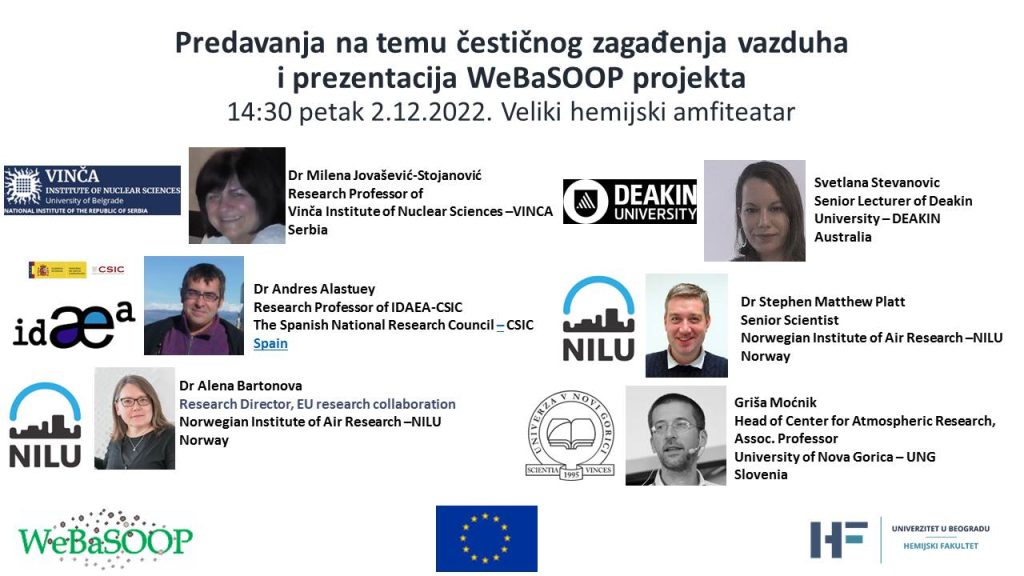 Our WeBaSOOP team held several lectures and presentations at the Faculty of Chemistry, University of Belgrade, on December 2nd, 2022. The lectures were tailored for students interested in the topics of air quality.