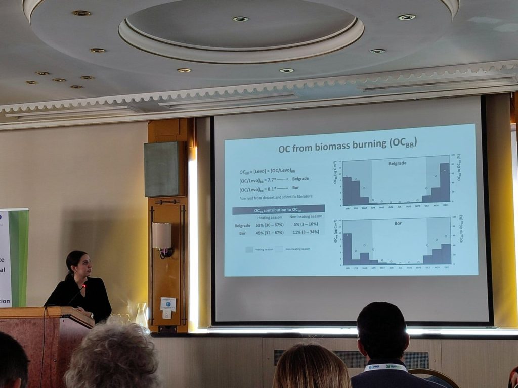 In October 2025, our team member, PhD student Bojana Petrović, participated at the Third Conference of the International Association for Biomonitoring of Environmental Pollution (IABEP 2025) in Belgrade, Serbia. Participation in this event provided opportunity to obtain experience and exchange knowledge about novel biomonitoring techniques and methodologies, emerging pollutants and advances in bioindicators and biomarkers for pollution monitoring. The presentation “Distinguishing between anthropogenic and natural sources of carbonaceous aerosol in Belgrade” showed results from WeBaSOOP project, including offline source apportionment of carbonaceous aerosols. Using specific organic tracers, both anthropogenic (biomass burning by detection of levoglucosan, mannosan and galactosan) and natural sources (primary biological aerosol particles by quantifying sugars and polyols and secondary biogenic aerosol from isoprene by detection of 2-methyltetrols) were identified.